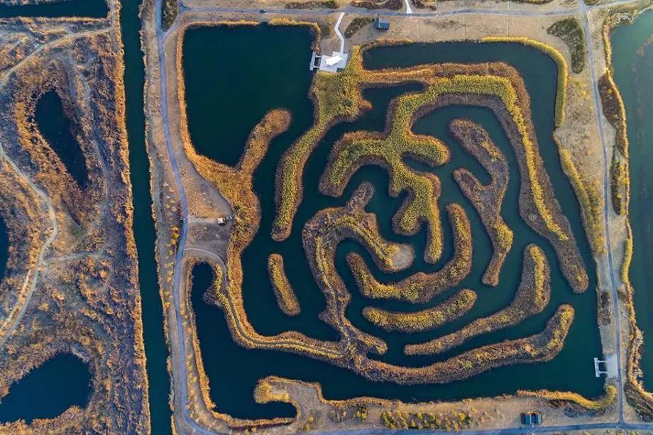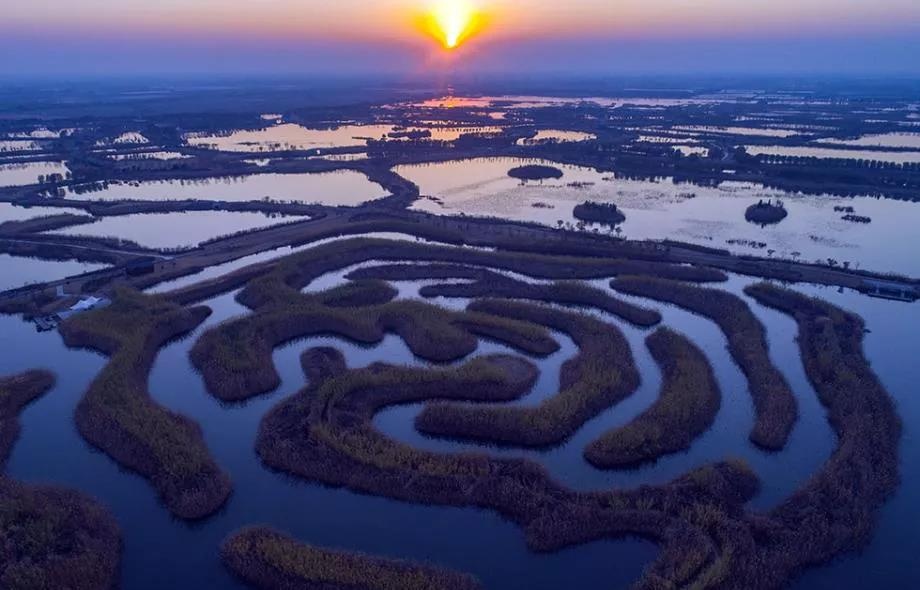 【景区风采】冬日白马湖湿地芦苇金黄 俯瞰宛如迷宫