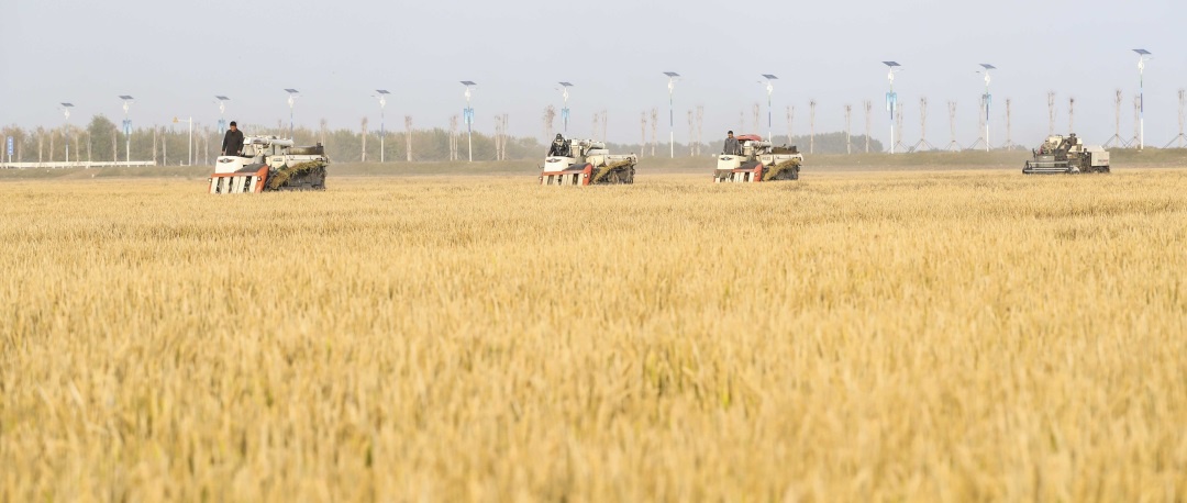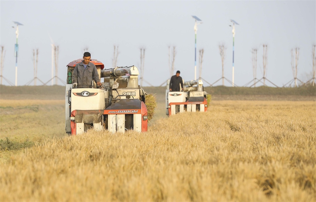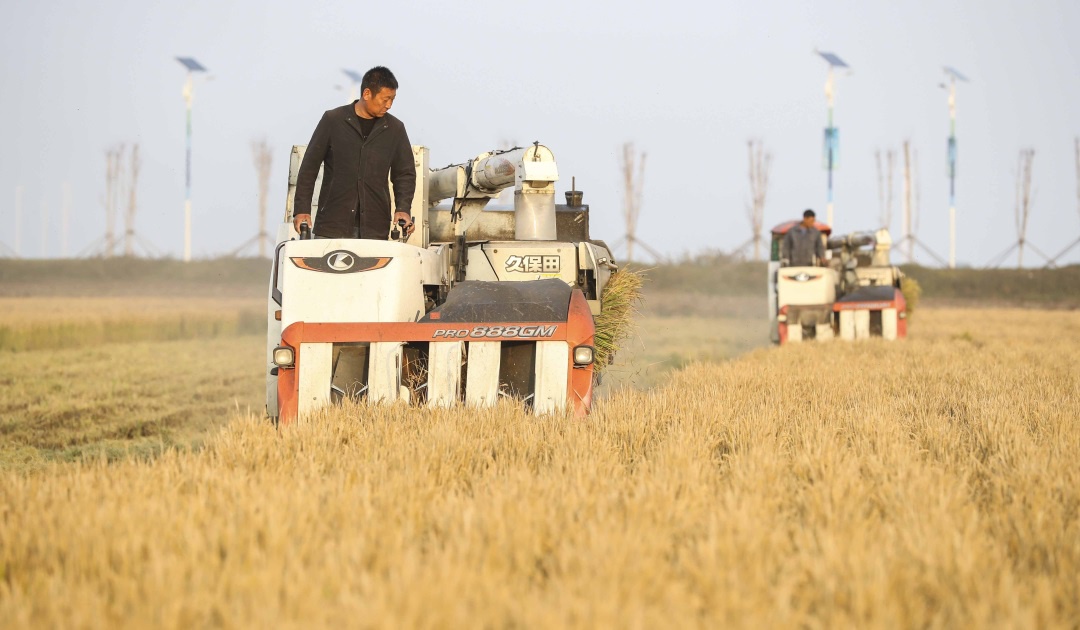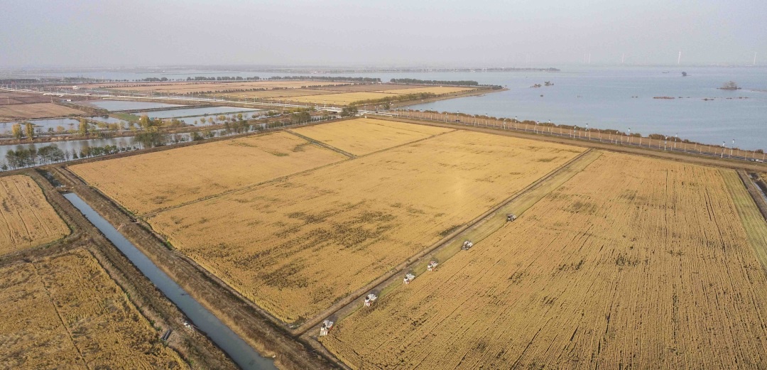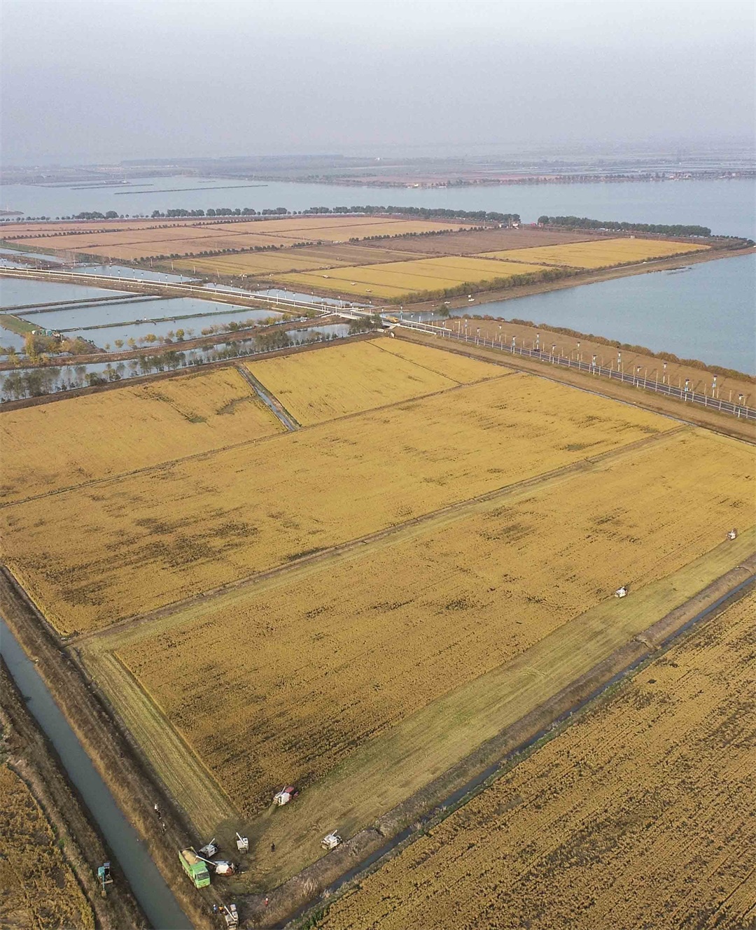 11月24日,淮安白马湖向日葵的故事景区旁,2600余亩晚稻喜获丰收。近年来,江苏省淮安市在湖区生态环境改造中,充分利用弃土区的肥沃土壤和淡水资源,种植小麦、油菜、玉米、水稻等农作物,培育品牌有机绿色农产品,实现生态环境和经济价值“双丰收”。