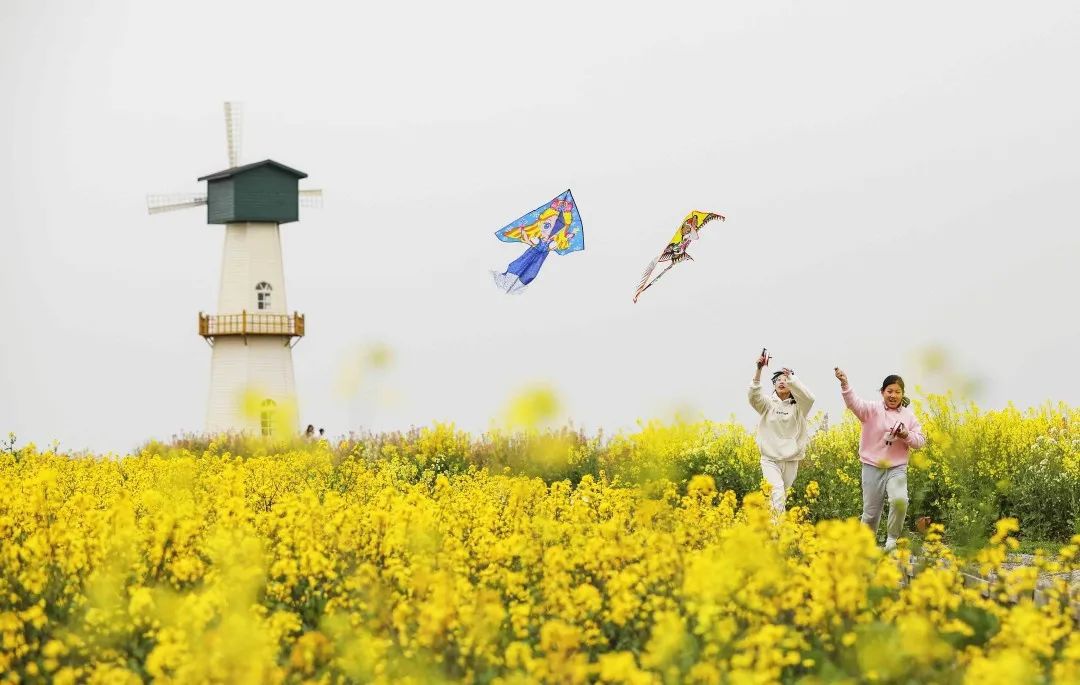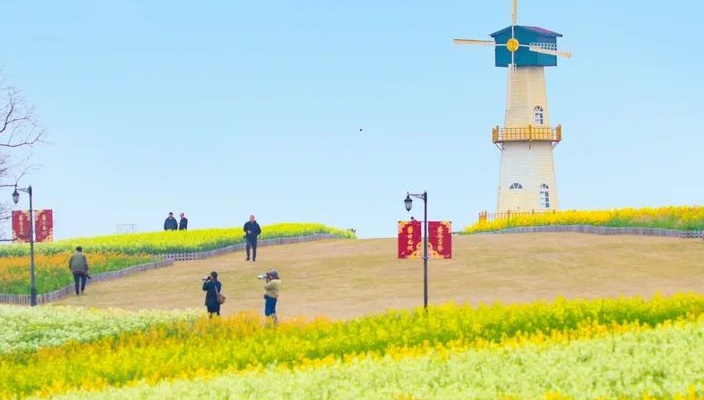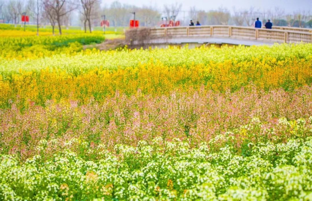 白马湖多色油菜花海景观由省农科院特别研发的彩色油菜品种打造,除了常见的黄色外,还有粉色、橙色、白色、淡黄色等8种不同颜色,花朵层层叠叠,尤为浪漫梦幻。