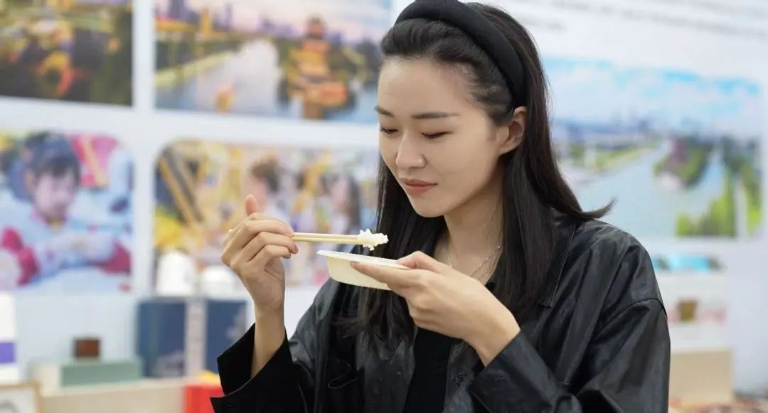 活动现场,不少展商、市民前往试吃淮安大米,对它的味道赞不绝口:“这种米好吃,是小时候的味道!”在beat365在线体育主题展区,观众们不仅可以品尝到正宗的淮安大米,还可以亲手制作一张“淮安大米”纪念明信片。明信片通过讲述“一粒米的成长故事”,巧妙融合了淮安的风土人文,传达了对自然和美好生活的向往和追求,勾勒了“风禾尽起,盈车嘉穗”的美好图景,受到很多年轻消费者的追捧。