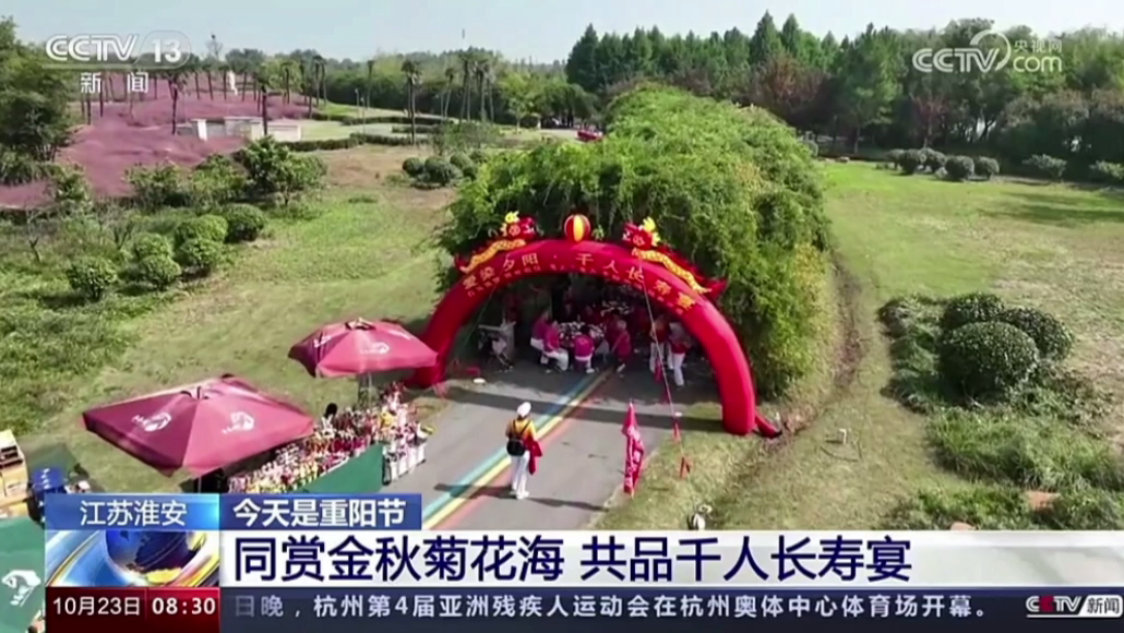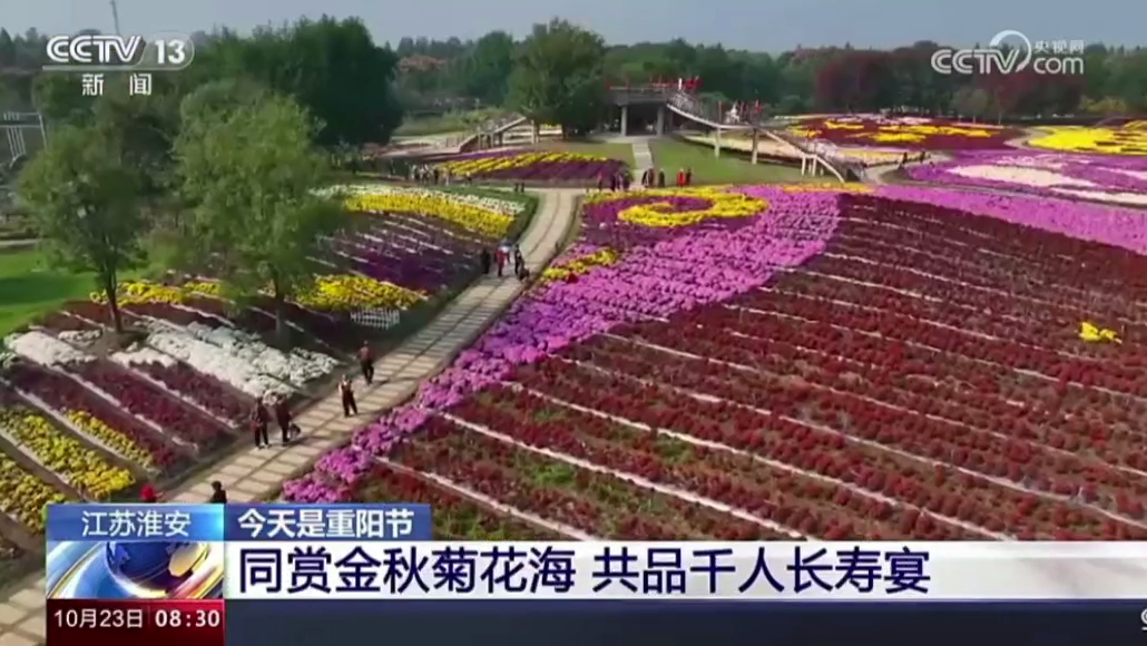 今天是农历九月初九,是我国的传统敬老节日——重阳节,各地通过举办各类活动传承敬老爱老的优良传统,营造良好的社会氛围。九九重阳节是登高望远赏菊的好时节,在淮安白马湖旅游度假区,一年一度的特色菊花展开幕,色彩斑斓、摇曳多姿的菊花,吸引游客纷至沓来。景区还开展“同赏金秋菊花海 共品千人长寿宴”活动,来自湖北、贵州、浙江、上海、江西等地的1500余名老年游客欢聚于此,赏菊花、品美食、观民俗。