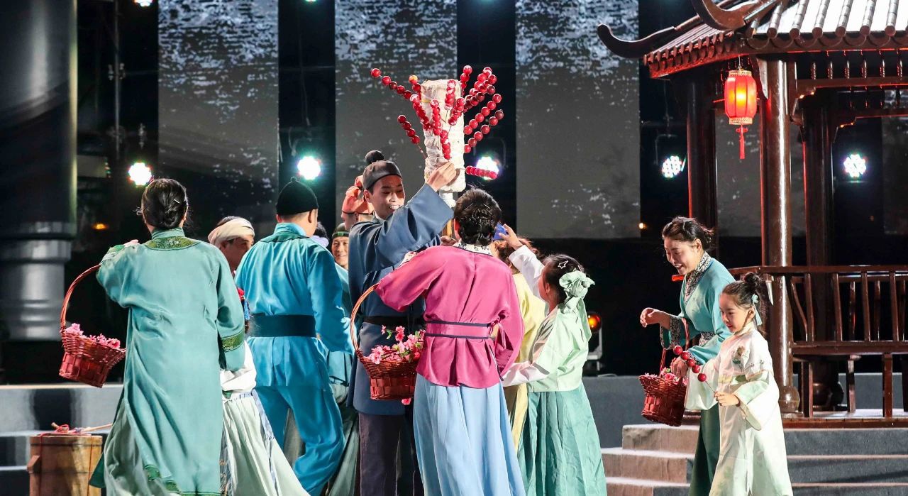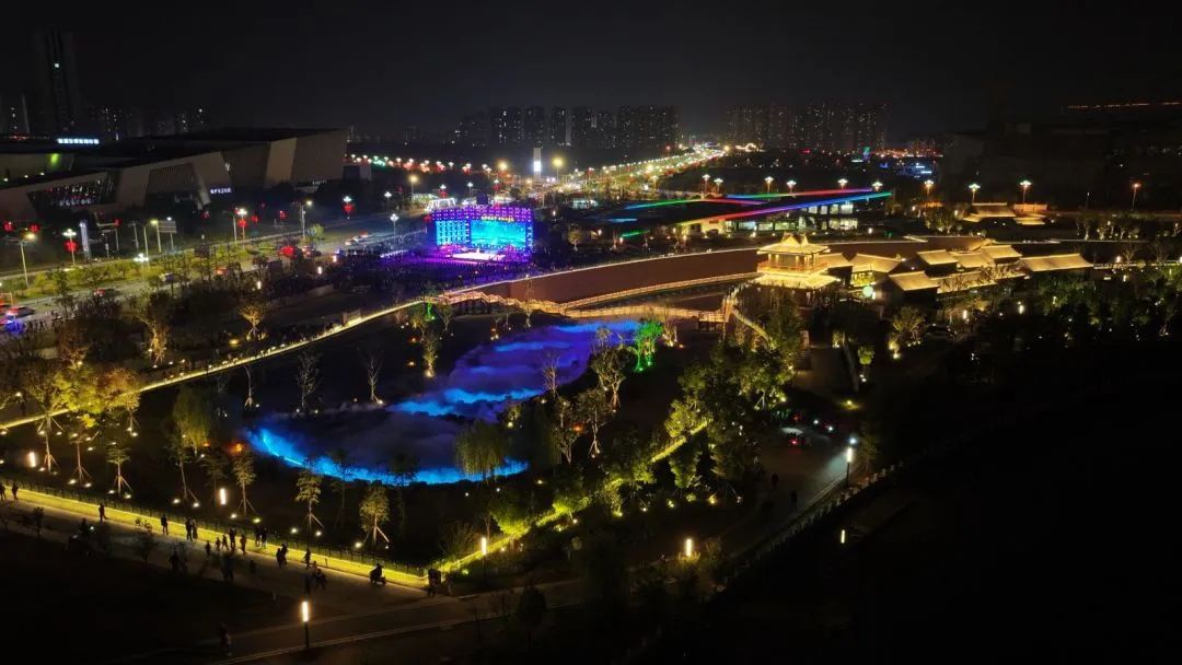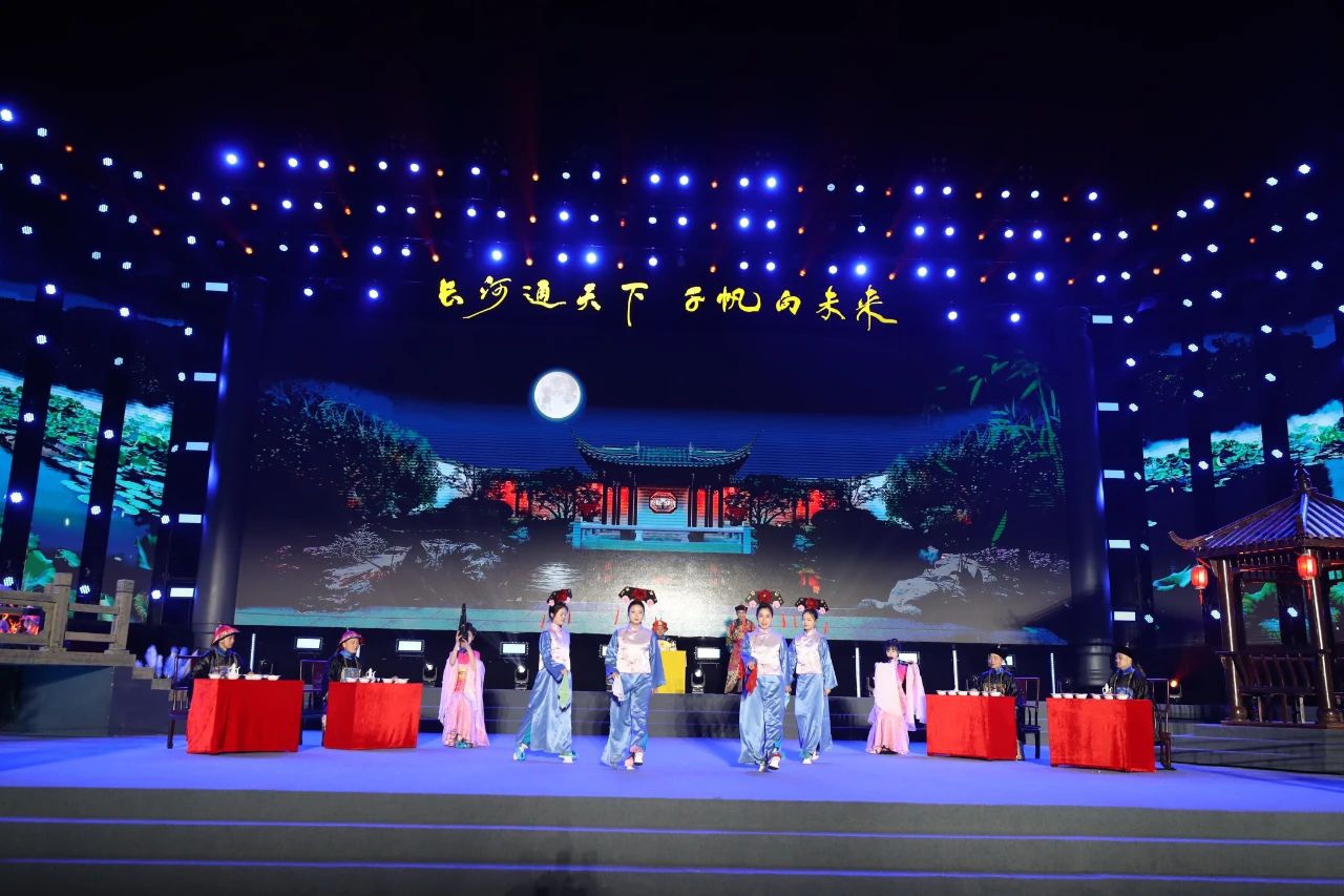 10月23日晚,大型户外音诗画《长河通天下 千帆向未来》在大运河板闸遗址公园精彩亮相,吸引众多市民群众驻足观看。