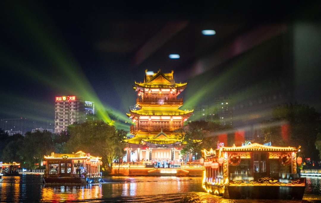 运河之畔,灯光璀璨