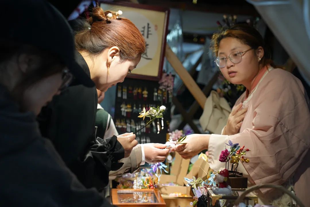 烟火气十足的万事大“集”更是集聚了几十个特色摊位,涵盖了小吃饮品、手工文创、非遗作品等各类业态,为前来的市民、游客提供了丰富多样的消费选择。