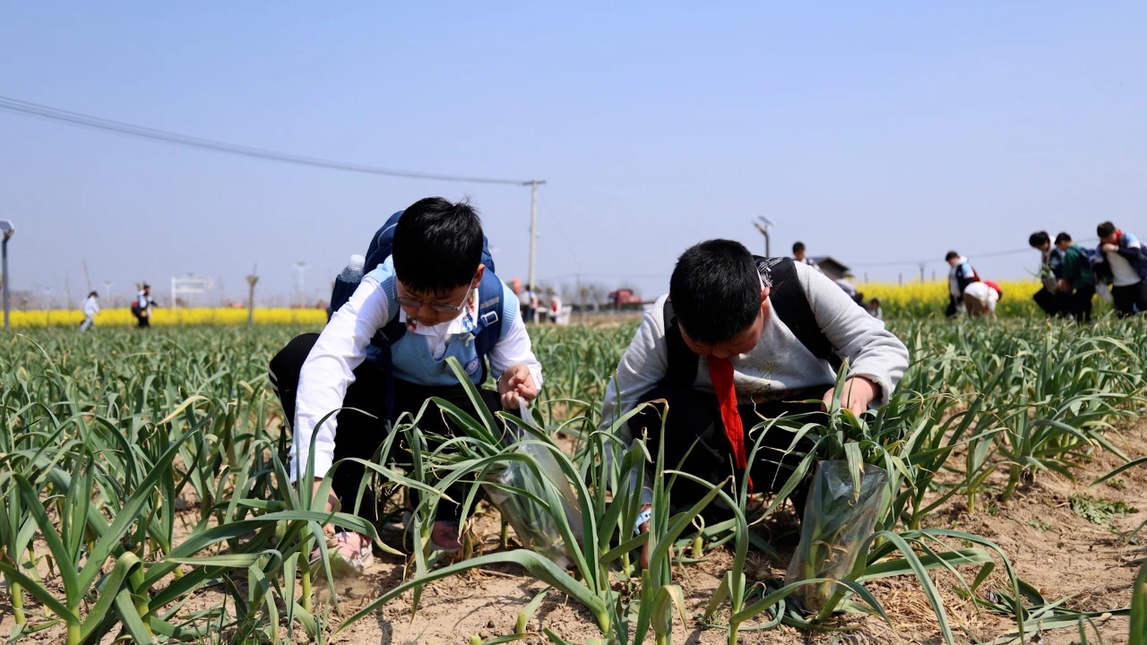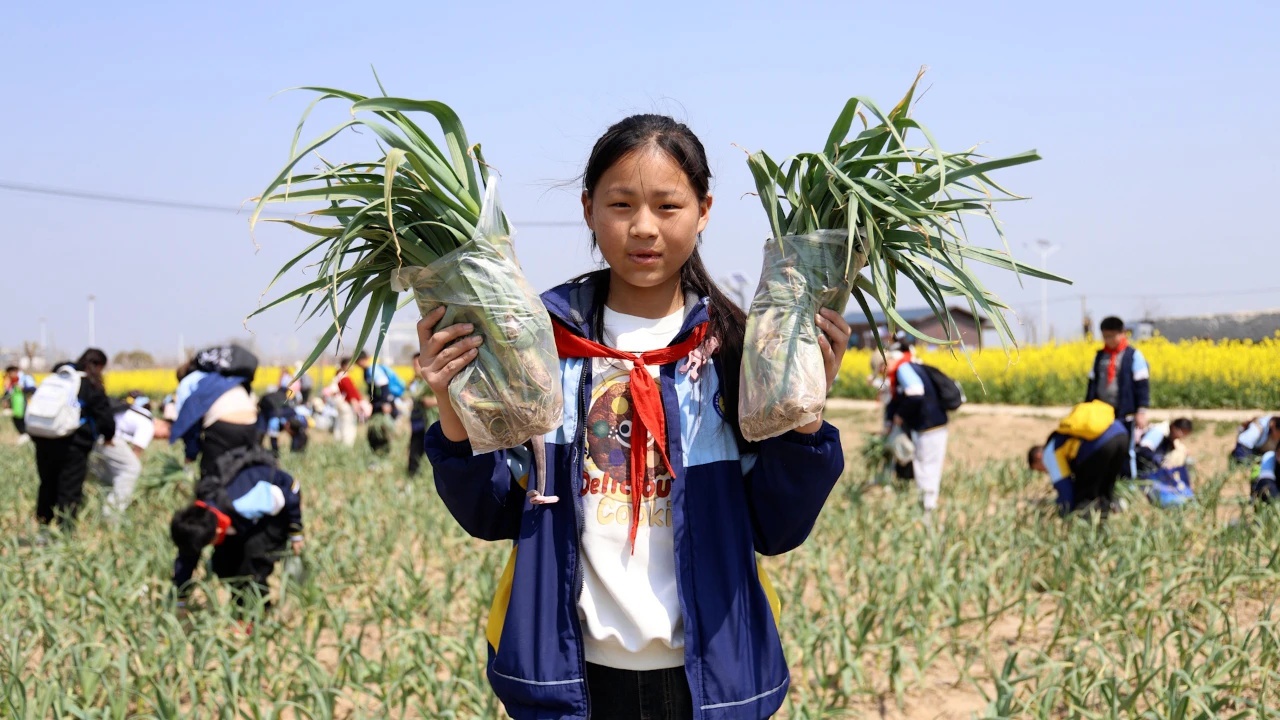 另一边的青蒜采摘区同样精彩。各班级同学到达场地后开启采摘比赛,大家争分夺秒,努力拔出完整青蒜。在紧张欢乐的氛围中,同学们体验到劳动的不易,也收获成功的喜悦。六(13)班的赵越老师说:“这次活动意义非凡,让孩子们走出教室亲近自然,培养了他们的劳动能力,激发了他们的艺术创造力,助力孩子全方位成长。”