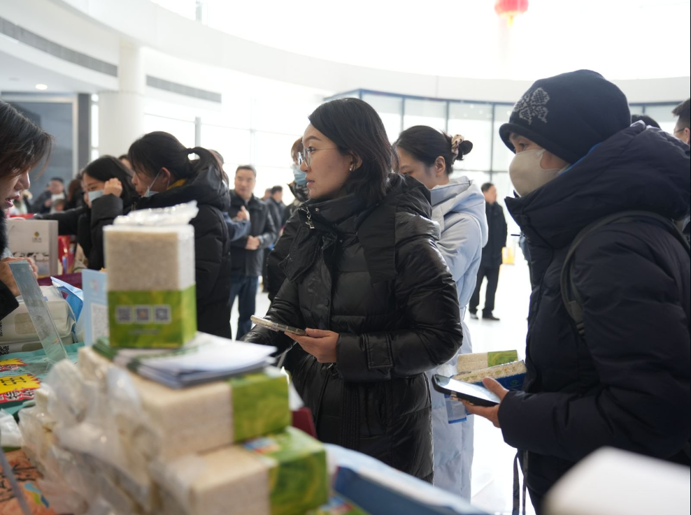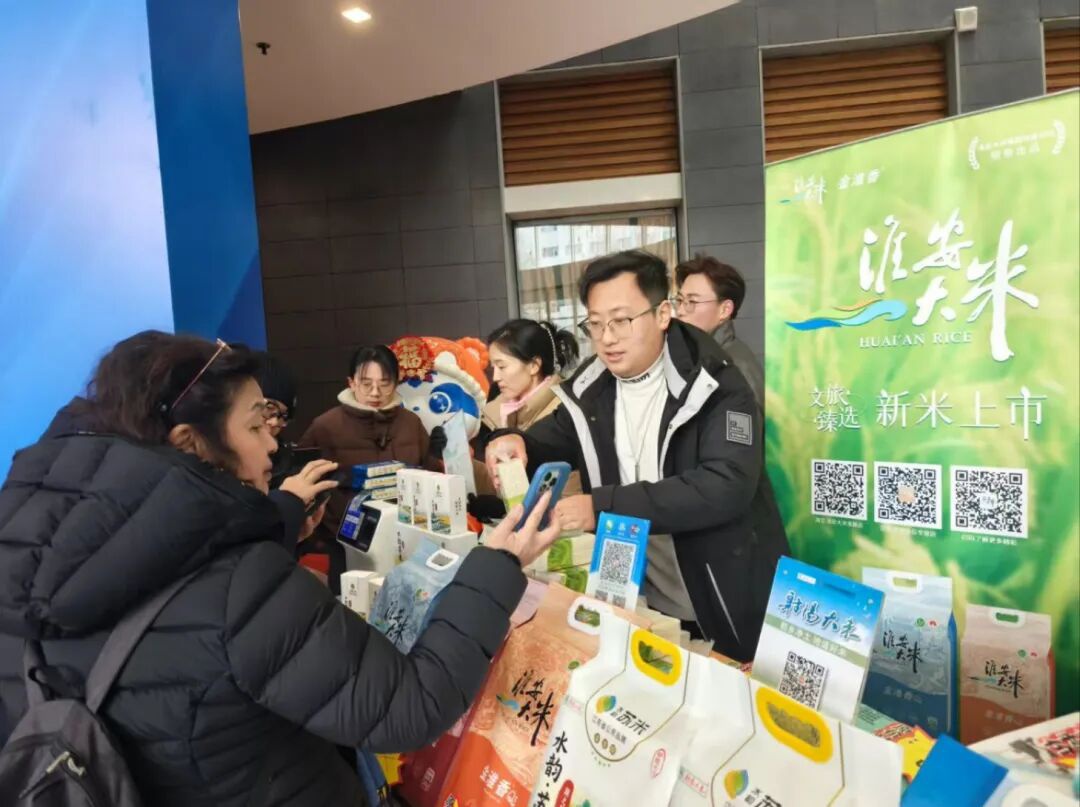 活动现场精彩纷呈,人气火爆。在新华社总社综合楼一楼集中展销区,淮安市文旅集团精心搭建的“淮安风物集市”汇聚了来自运河之畔的优质产品:晶莹软糯的淮安大米、清香甘醇的白马湖金丝皇菊、芡实、黑猪肉制品、现烤现售的黄桥烧饼以及融汇运河故事与巧思的文创产品,深受新华社职工欢迎,销售现场气氛热烈,充分展现了“淮安好物”的受欢迎程度。