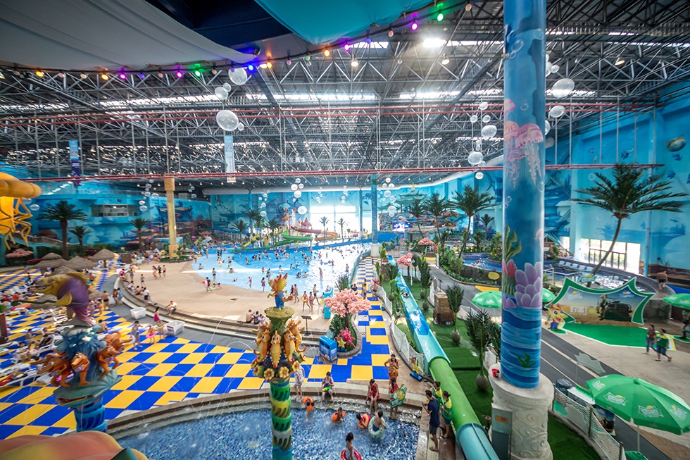 嬉水世界是苏北地区首个大型室内水世界,由冲浪区域、儿童区域、滑道区域和浮潜区域等7个主题区域组成,拥有30多种游乐设备,包括大型造浪池、高速滑道、多组合滑道以及472米长的具有海洋极地主题故事特色主题漂流河。