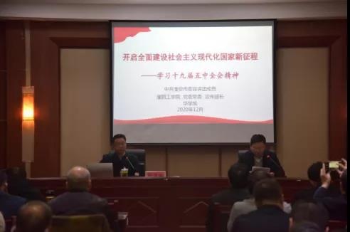 为深入学习领会党的十九届五中全会精神,12月9日,市文旅集团、白马湖办、白马湖公司邀请市委宣讲团成员,淮阴工学院党委常委、宣传部部长,教授华学成为三家单位党员干部作了党的十九届五中全会精神专题报告会。(党群工作部)